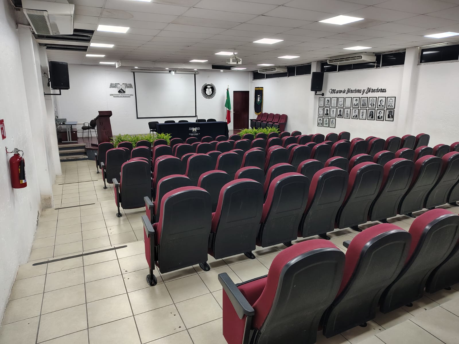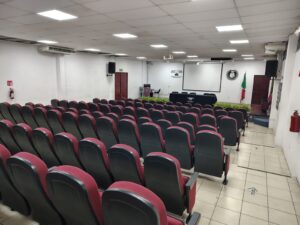 La Facultad dispone también de un auditorio institucional con capacidad para 250 personas sentadas, equipado con proyector, sistema de audio, micrófonos y conectividad a internet. Este espacio se utiliza para conferencias, seminarios, presentaciones de tesis, actividades de divulgación y eventos académicos de alto impacto.