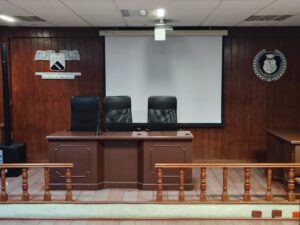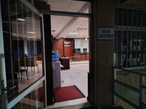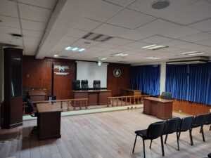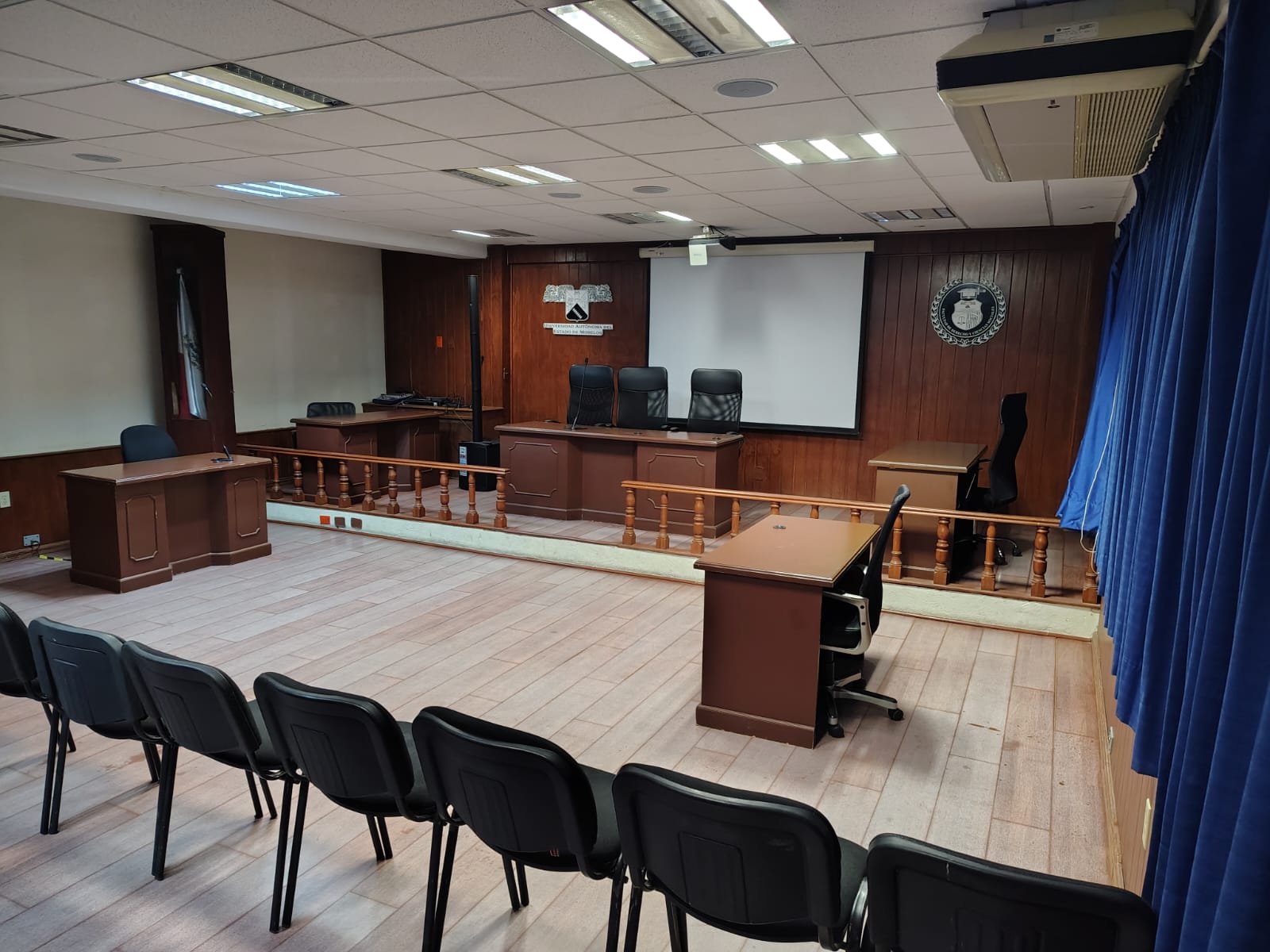 La Facultad cuenta además con una Sala de Juicios Orales, espacio destinado a la enseñanza de habilidades prácticas en litigación oral, simulación de audiencias y desarrollo de destrezas propias de los sistemas adversariales del proceso penal acusatorio, así como de los juicios orales familiares y mercantiles. Esta sala está equipada con proyector, pantalla, sistema de audio, podio, barandilla y veinte sillas para igual número de participantes e internet. En ella se celebran también exámenes de titulación profesional y las reuniones de comités tutoriales para el seguimiento puntual de los avances de tesis de nuestros estudiantes.